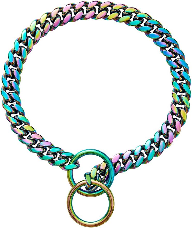 Offers a lighter aluminum material with a gold coating that is 1/3 weight of stainless steel material. Such a lightweight Cuban link collar prevents the puppy or a small dog’s neck from injuries